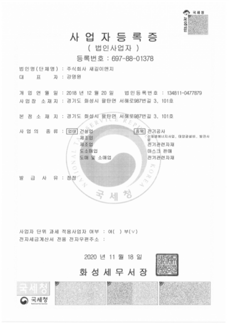 주식회사 새길이앤지 고객센터